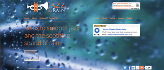 ウェブサイトを開くと、すぐに雨音が聞こえてきます。雨音にも変化や強弱があり、実際に雨が降っているような臨場感があります。画面の右側にプレーヤがあり、「Smooth」「Classic」「Swing」「Lounge」とジャズをジャンル別で選べるほか、「Playlist」から曲を選択することもできます。気分や雰囲気に合わせてチャンネルを変えてみてもよいでしょう。